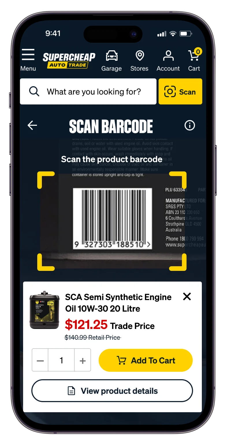Simply scan any product on your mobile device, whether in-store or at your workshop, and instantly access full product information, including trade pricing. Ready to add directly to your cart!